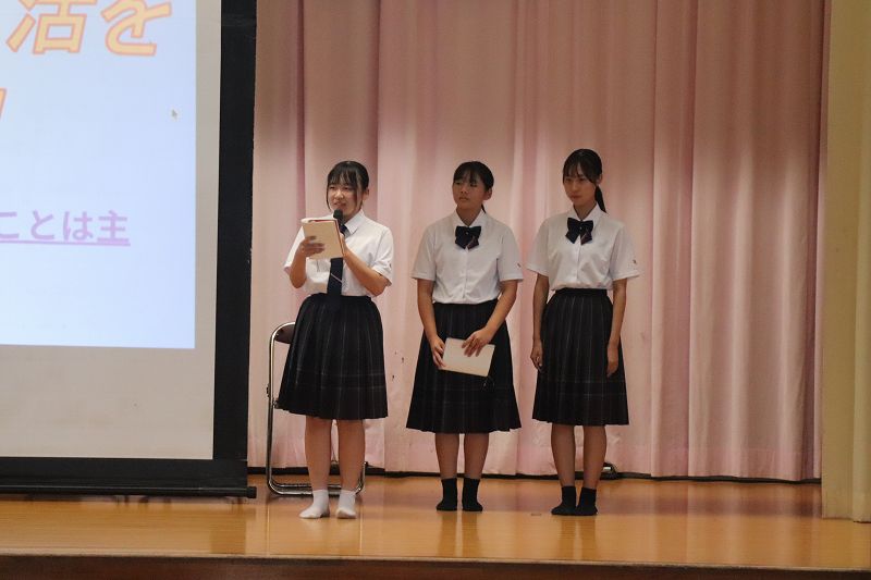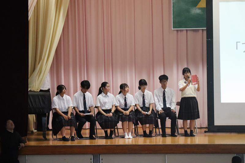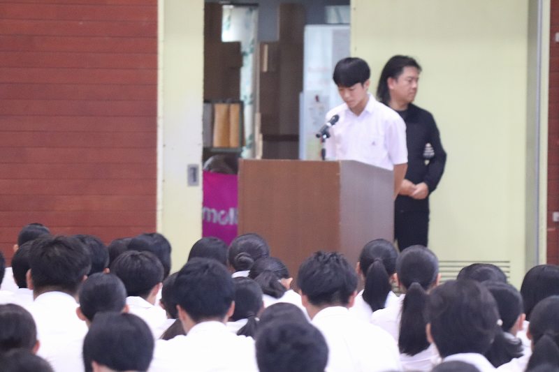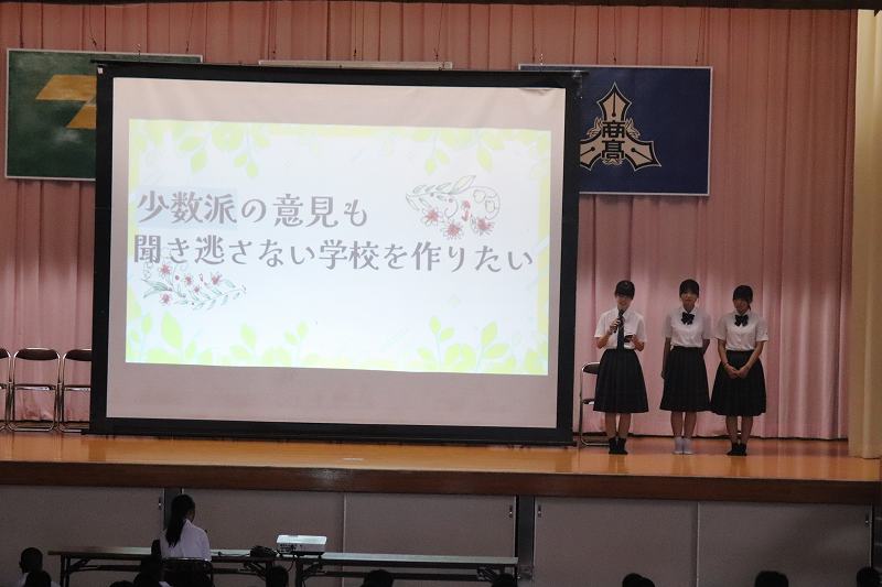 定数12名に対して1・2年生15名が立候補し、投票に先立ち、立候補者が掲げるマニフェスト等の演説を行いました。