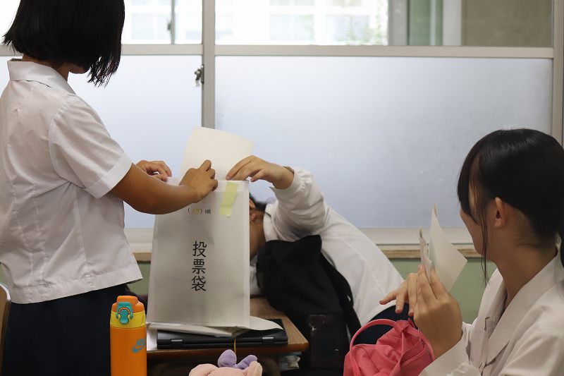 選挙権年齢の引き下げにより、本校生徒の中にもすでに実際の地方選挙にて投票を経験した生徒もいます。